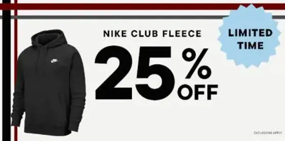 Limited time! Shop in store and get 25% off Nike Club fleece.